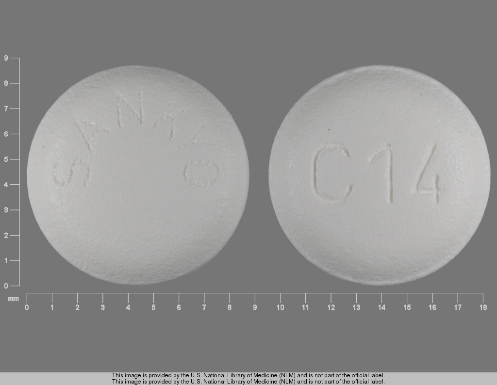 This medication is a White Round 9 mm, Film coated tablet with imprint "Sankyo;C14". This belongs to the Angiotensin 2 receptor blocker pharmacologic class. It is manufactured by Daiichi Sankyo. For details please contact your physician.