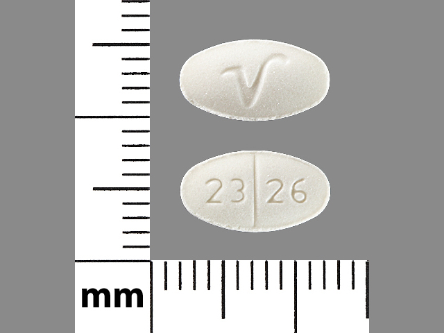 This medication is a White Oval 10 mm, Tablet with imprint "2326;V". It contains Benztropine mesylate 1 mg; of Benztropine mesylate[benztropine];. This belongs to the Anticholinergic pharmacologic class. It is manufactured by Aphena Pharma Solutions - Tennessee, LLC. For details please contact your physician.