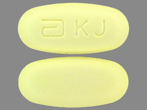 This medication is a Yellow Oval 19 mm, Film coated extended release tablet with imprint "a;KJ". It contains Clarithromycin 500 mg; of Clarithromycin[clarithromycin];. This belongs to the Macrolide antimicrobial pharmacologic class. It is manufactured by AbbVie Inc.. For details please contact your physician.