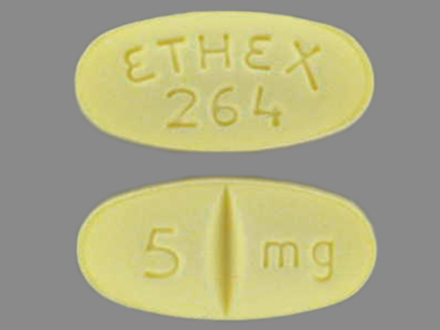 This medication is a Yellow Oval 9 mm, Tablet with imprint "ETHEX;264;5;mg". It is manufactured by ETHEX. For details please contact your physician.