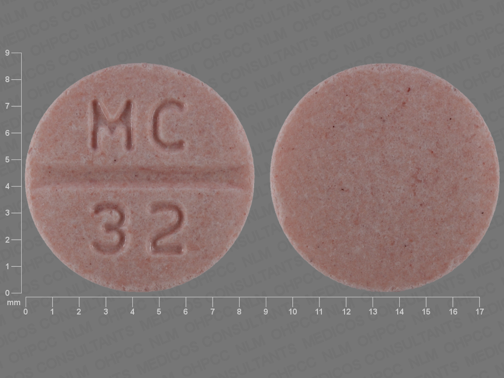 This medication is a Pink Round 10 mm, Tablet with imprint "MC;32". It contains Candesartan cilexetil 32 mg; of Candesartan cilexetil[candesartan];. This belongs to the Angiotensin 2 receptor blocker pharmacologic class. It is manufactured by Sandoz Inc. For details please contact your physician.