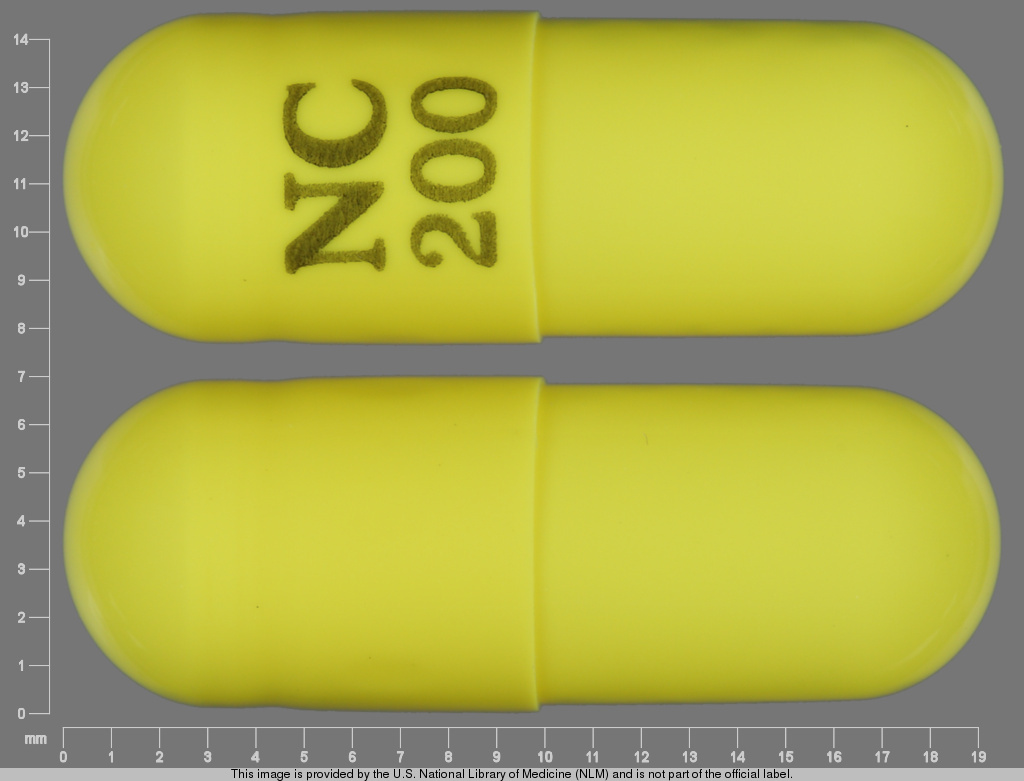 This medication is a Yellow Capsule 19 mm, Extended release capsule with imprint "NC;200". It contains Carbamazepine 200 mg; of Carbamazepine[carbamazepine];. This belongs to the Mood stabilizer pharmacologic class. It is manufactured by Nostrum Laboratories, Inc.. For details please contact your physician.