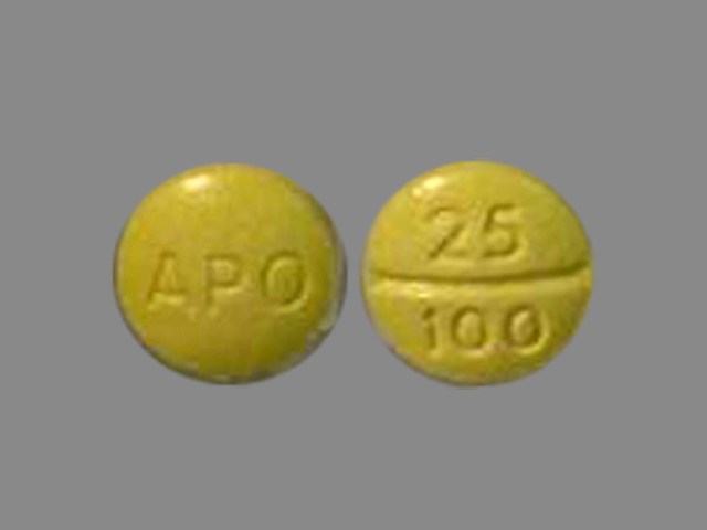 This medication is a Yellow Round 7 mm, Tablet with imprint "APO;25;100". It contains Carbidopa 25 mg;levodopa 100 mg; of Carbidopa[carbidopa anhydrous];levodopa[levodopa];. It is manufactured by Apotex Corp.. For details please contact your physician.