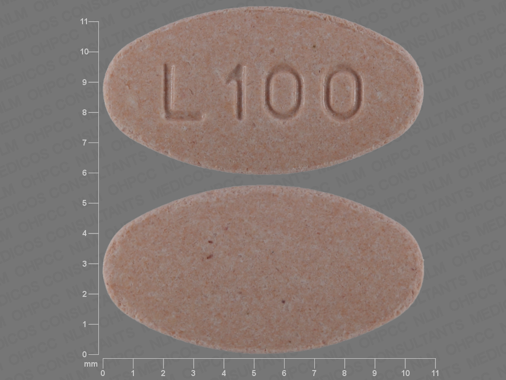 This medication is an Orange Oval 10 mm, Tablet with imprint "L;100". It is manufactured by Accord Healthcare Inc.. For details please contact your physician.
