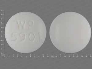 This medication is a White Round 10 mm, Tablet with imprint "WP;5901". It contains 250 mg of Carisoprodol 250 mg. It is manufactured by Wallace Pharmaceuticals Inc.. For details please contact your physician.