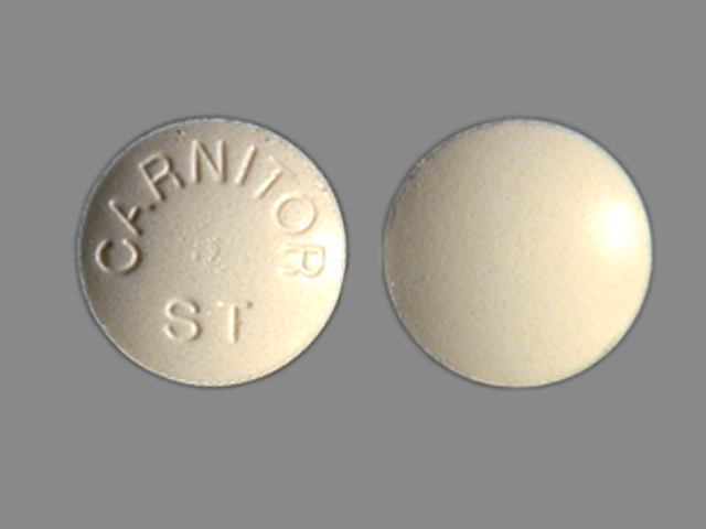 This medication is a White Round 6 mm, Tablet with imprint "CARNITOR;ST". It contains Levocarnitine 330 mg; of Levocarnitine[levocarnitine];. This belongs to the Carnitine analog pharmacologic class. It is manufactured by Leadiant Biosciences, Inc.. For details please contact your physician.