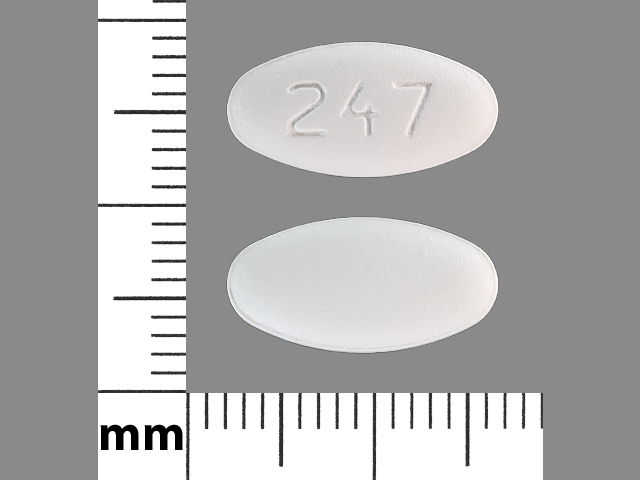 This medication is a White Oval 15 mm, Film coated tablet with imprint "247". It contains Carvedilol 25 mg; of Carvedilol[carvedilol];. This belongs to the Alpha-adrenergic blocker pharmacologic class. It is manufactured by AvKARE, Inc.. For details please contact your physician.