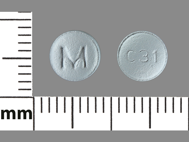 This medication is a Blue Round 6 mm, Film coated tablet with imprint "M;C31". It contains Carvedilol 3.125 mg; of Carvedilol[carvedilol];. This belongs to the Alpha-adrenergic blocker pharmacologic class. It is manufactured by Aphena Pharma Solutions - Tennessee, LLC. For details please contact your physician.