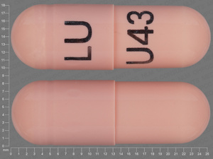 This medication is a Pink Capsule 25 mm, Capsule with imprint "LU;U43". It is manufactured by Lupin Pharma. For details please contact your physician.