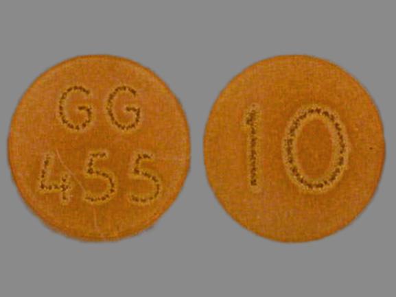 This medication is an Orange Round 7 mm, Film coated tablet with imprint "GG455;10". It contains Chlorpromazine hydrochloride 10 mg; of Chlorpromazine hydrochloride[chlorpromazine];. This belongs to the Phenothiazine pharmacologic class. It is manufactured by Sandoz Inc. For details please contact your physician.