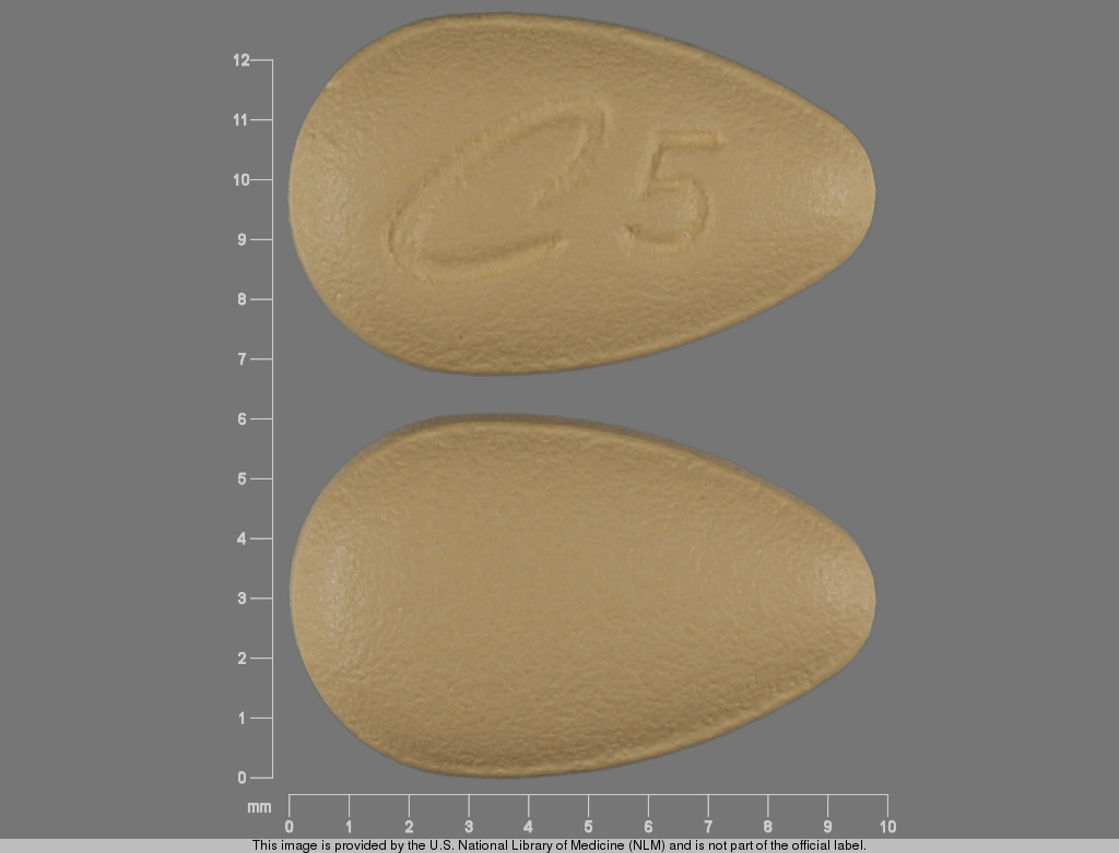 This medication is a Yellow Oval 10 mm, Film coated tablet with imprint "C;5". It contains Tadalafil 5 mg; of Tadalafil[tadalafil];. This belongs to the Phosphodiesterase 5 inhibitor pharmacologic class. It is manufactured by Eli Lilly and Company. For details please contact your physician.