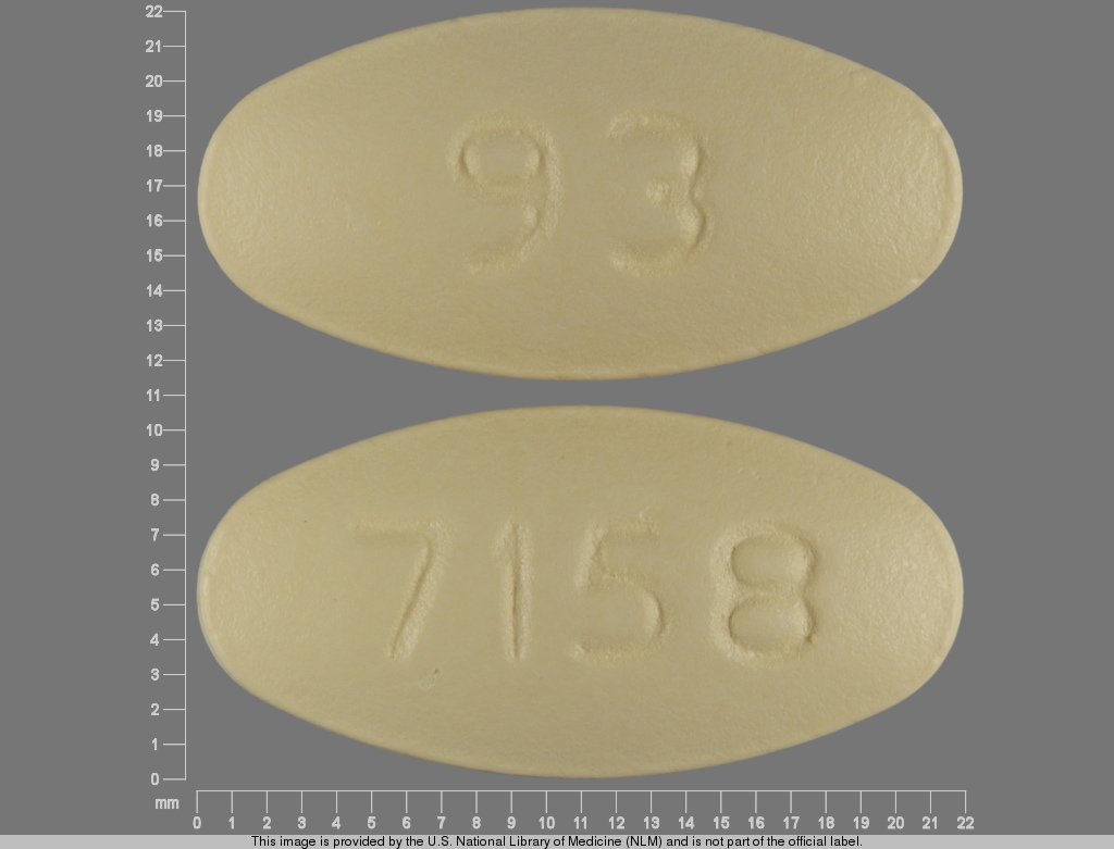 This medication is a Yellow Oval 21 mm, Film coated tablet with imprint "93;7158". It contains Clarithromycin 500 mg; of Clarithromycin[clarithromycin];. This belongs to the Macrolide antimicrobial pharmacologic class. It is manufactured by Teva Pharmaceuticals USA Inc. For details please contact your physician.