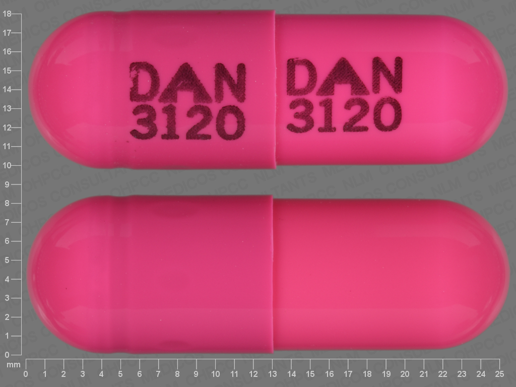 This medication is a Pink Capsule 25 mm, Capsule with imprint "DAN;3120". It contains Clindamycin hydrochloride 300 mg; of Clindamycin hydrochloride[clindamycin];. This belongs to the Lincosamide antibacterial pharmacologic class. It is manufactured by Actavis Pharma, Inc.. For details please contact your physician.
