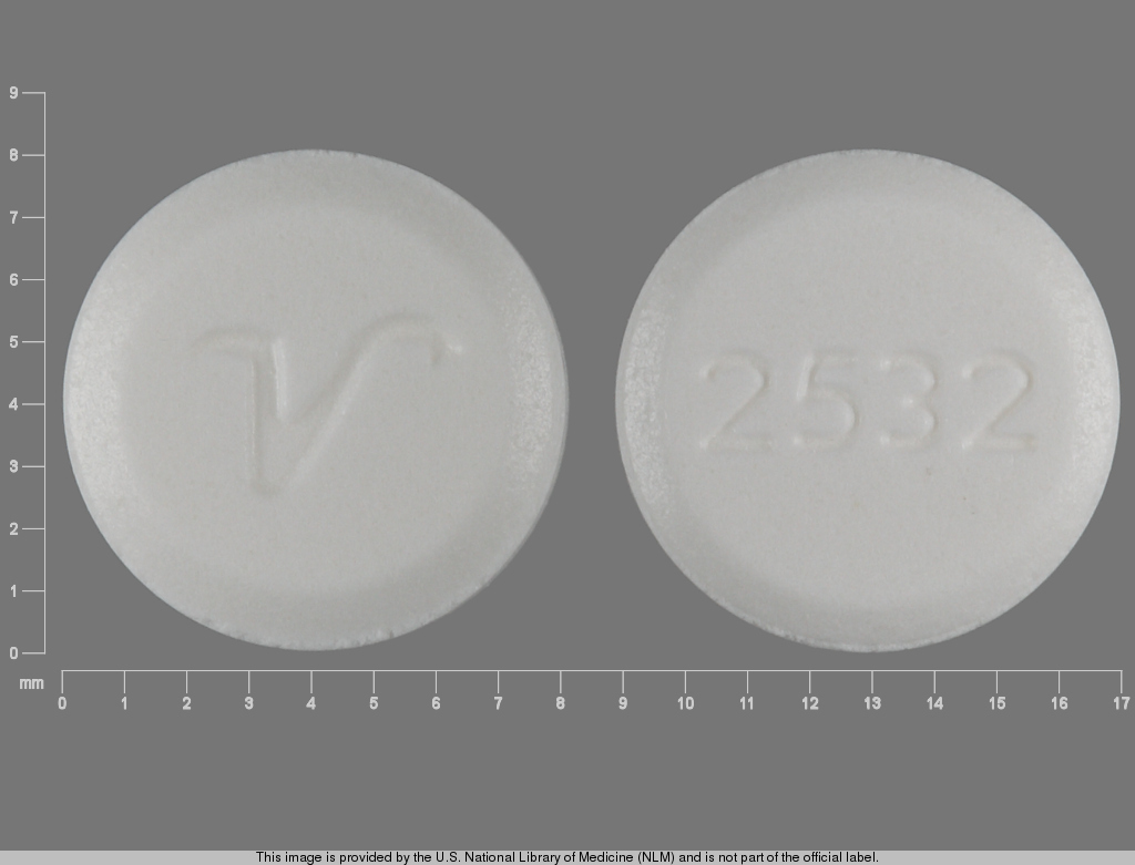 This medication is a White Round 8 mm, Tablet with imprint "2532;V". It contains Clonazepam 2 mg; of Clonazepam[clonazepam];. This belongs to the Benzodiazepine pharmacologic class. It is manufactured by Qualitest Pharmaceuticals. For details please contact your physician.