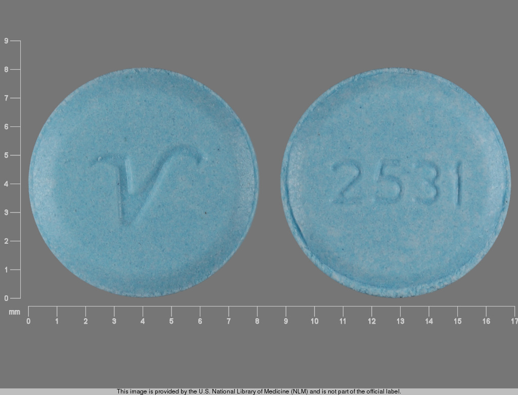 This medication is a Blue Round 8 mm, Tablet with imprint "2531;V". It contains Clonazepam 1 mg; of Clonazepam[clonazepam];. This belongs to the Benzodiazepine pharmacologic class. It is manufactured by Qualitest Pharmaceuticals. For details please contact your physician.