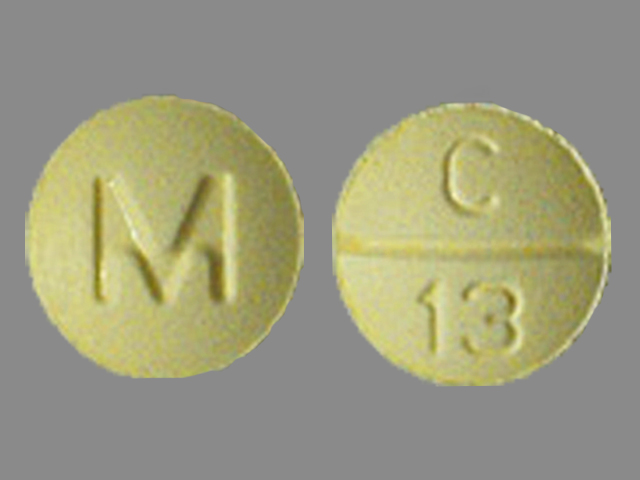 This medication is a Yellow Round 8 mm, Tablet with imprint "M;C;13". It contains Clonazepam 0.5 mg; of Clonazepam[clonazepam];. This belongs to the Benzodiazepine pharmacologic class. It is manufactured by Mylan Institutional Inc.. For details please contact your physician.