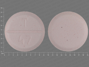 This medication is a Pink Round 9 mm, Tablet with imprint "T;47". It contains 15 mg of Clorazepate dipotassium 15 mg. It is manufactured by Taro Pharmaceuticals U.S.A., Inc.. For details please contact your physician.