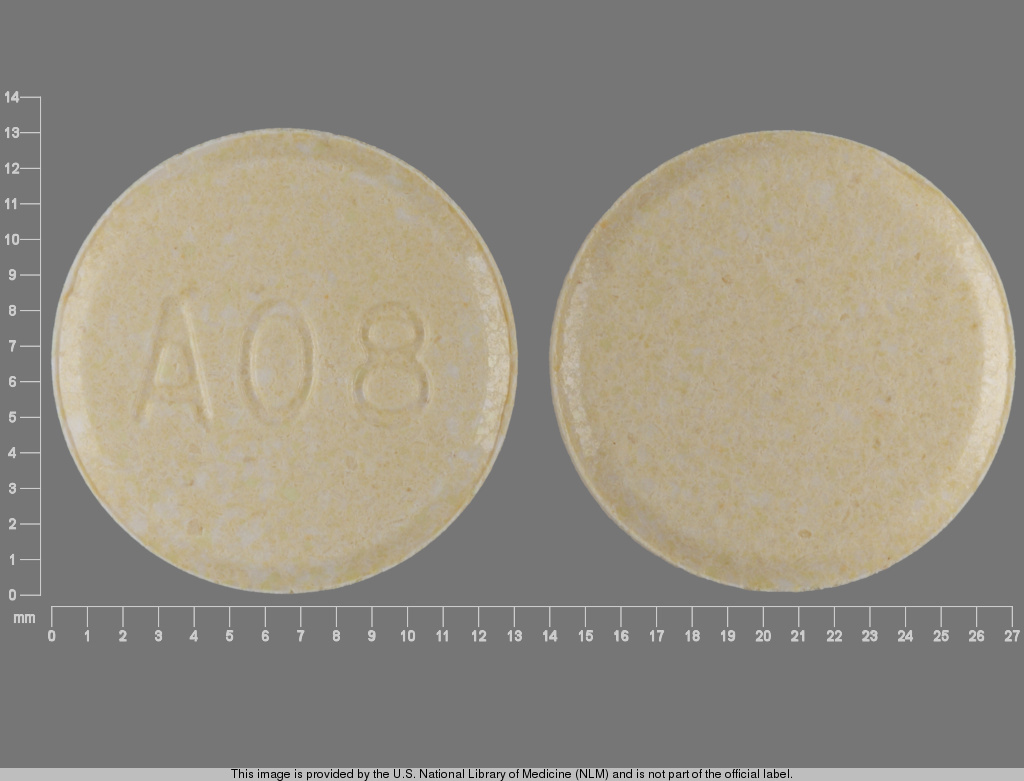 This medication is a Yellow Round 13 mm, Orally disintegrating tablet with imprint "A08". It contains Clozapine 100 mg;aspartame 12.4 mg; of Clozapine[clozapine];aspartame[];. This belongs to the Atypical antipsychotic pharmacologic class. It is manufactured by Teva Pharmaceuticals USA Inc. For details please contact your physician.