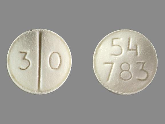 This medication is a White Round 6 mm, Tablet with imprint "30;54;783". It contains Codeine sulfate 30 mg; of Codeine sulfate[codeine anhydrous];. It is manufactured by West-Ward Pharmaceuticals Corp.. For details please contact your physician.