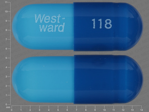 This medication is a Blue, blue Capsule 14 mm, Capsule with imprint "West;ward;118". For details please contact your physician.