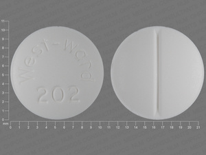 This medication is a White Round 10 mm, Tablet with imprint "West;ward;202". It contains 25 mg of Cortisone acetate 25 mg. It is manufactured by West-ward Pharmaceutical Corp. For details please contact your physician.
