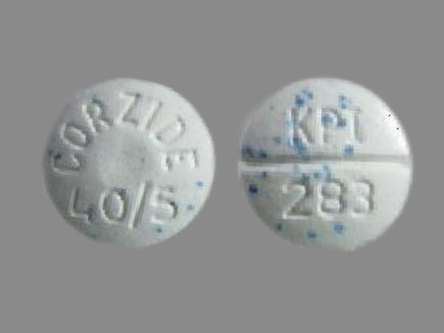 This medication is a White Round 9 mm, Tablet with imprint "KPI;283;Corzide;40;5". It contains Nadolol 40 mg;bendroflumethiazide 5 mg; of Nadolol[nadolol];bendroflumethiazide[bendroflumethiazide];. It is manufactured by Pfizer Laboratories Div Pfizer Inc. For details please contact your physician.