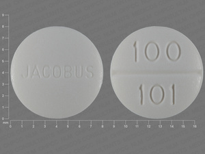 This medication is a White Round 8 mm, Tablet with imprint "JACOBUS;100;101". It is manufactured by Jacobus Pharmaceutical Company, Inc.. For details please contact your physician.