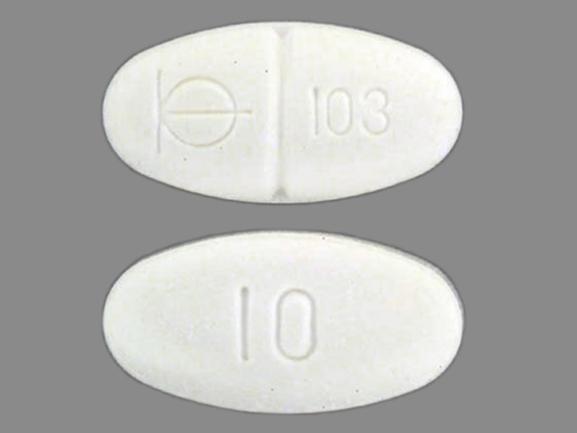 This medication is a White Oval 11 mm, Tablet with imprint "BM;103;10". It is manufactured by Roche Pharmaceuticals. For details please contact your physician.