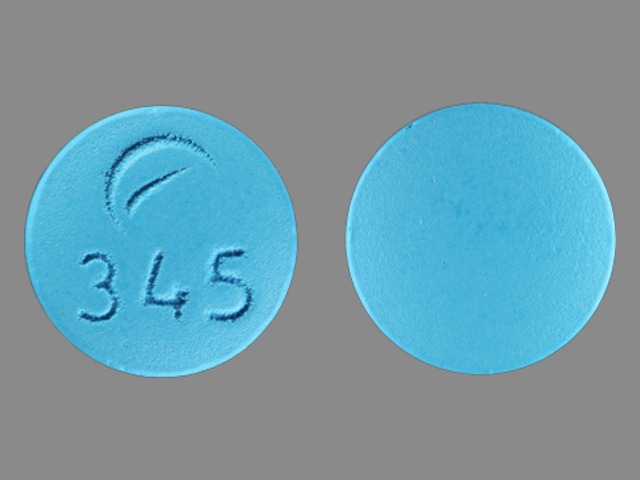 This medication is a Blue Round 10 mm, Film coated tablet with imprint "345". It contains Desipramine hydrochloride 100 mg; of Desipramine hydrochloride[desipramine];. This belongs to the Tricyclic antidepressant pharmacologic class. It is manufactured by Actavis Pharma, Inc.. For details please contact your physician.