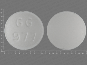 This medication is a White Round 10 mm, Tablet with imprint "GG;977". It contains 50 mg of Diclofenac potassium 50 mg. It is manufactured by Sandoz Inc. For details please contact your physician.