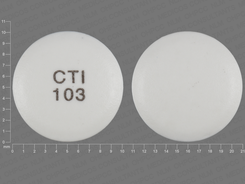 This medication is a White Round 10 mm, Delayed release tablet with imprint "CTI;103". It is manufactured by Carlsbad Technology, Inc.. For details please contact your physician.