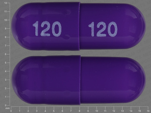 This medication is a Purple Capsule 16 mm, Extended release capsule with imprint "120;120". It is manufactured by Oceanside Pharmaceuticals. For details please contact your physician.