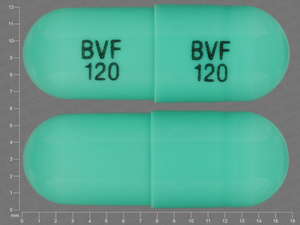 This medication is a Green Capsule 16 mm, Extended release capsule with imprint "BVF;120;BVF;120". It contains 120 mg of Diltiazem hydrochloride 120 mg. It is manufactured by Teva Pharmaceuticals USA Inc. For details please contact your physician.