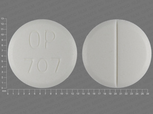 This medication is a White Round 13 mm, Tablet with imprint "OP;707". It contains 500 mg of Disulfiram 500 mg. It is manufactured by Teva Pharmaceuticals USA Inc. For details please contact your physician.