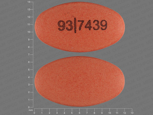This medication is an Orange Oval 12 mm, Delayed release tablet with imprint "93;7439". It is manufactured by Teva Pharmaceuticals USA Inc. For details please contact your physician.