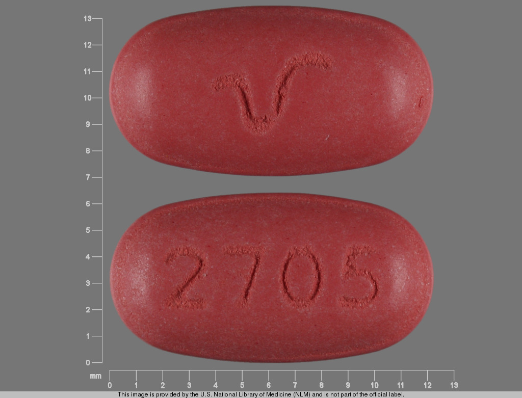This medication is a Red Oval 12 mm, Film coated tablet with imprint "2705;V". It contains Divalproex sodium 125 mg; of Divalproex sodium[valproic acid];. It is manufactured by Qualitest Pharmaceuticals. For details please contact your physician.