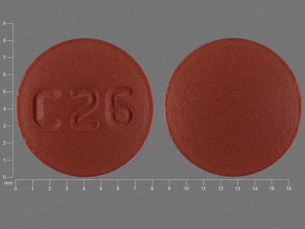 This medication is a Red Round 8 mm, Film coated tablet with imprint "C26". It contains Donepezil hydrochloride 23 mg; of Donepezil hydrochloride[donepezil];. This belongs to the Cholinesterase inhibitor pharmacologic class. It is manufactured by Macleods Pharmaceuticals Limited. For details please contact your physician.