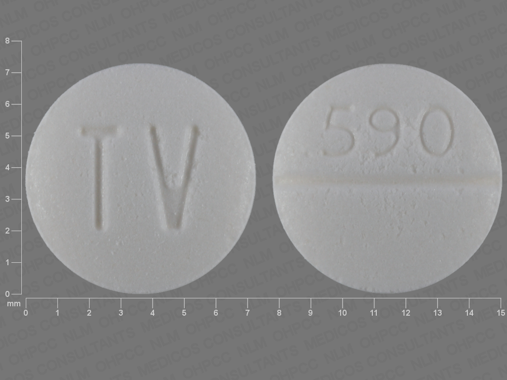 This medication is a White Round 7 mm, Tablet with imprint "590;TV". It is manufactured by Teva Pharmaceuticals USA Inc. For details please contact your physician.