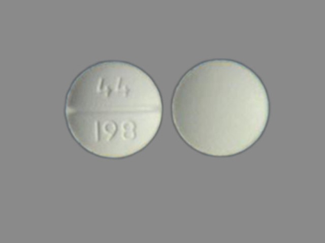 This medication is a White Round 9 mm, Tablet with imprint "44;198". It contains Dimenhydrinate 50 mg; of Dimenhydrinate[diphenhydramine];. It is manufactured by Major Pharmaceuticals. For details please contact your physician.