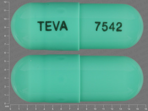 This medication is a Green Capsule 16 mm, Delayed release capsule with imprint "TEVA;7542". It is manufactured by Teva Pharmaceuticals USA Inc. For details please contact your physician.