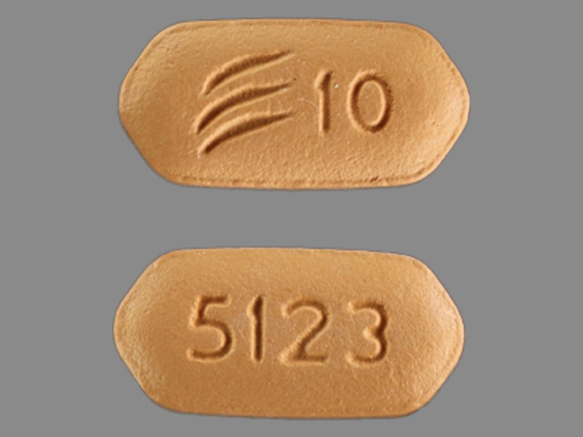 This medication is a Brown Hexagon (6 sided) 11 mm, Film coated tablet with imprint "10;5123". It contains Prasugrel hydrochloride 10 mg; of Prasugrel hydrochloride[prasugrel];. This belongs to the P2y12 platelet inhibitor pharmacologic class. It is manufactured by Eli Lilly and Company. For details please contact your physician.
