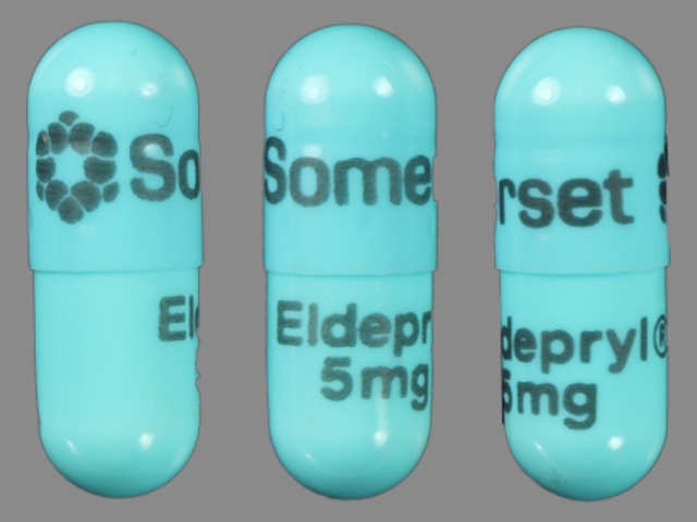 This medication is a Blue Capsule 16 mm, Capsule with imprint "Somerset;Eldepryl;5;mg". It contains Selegiline hydrochloride 5 mg; of Selegiline hydrochloride[selegiline];. This belongs to the Monoamine oxidase inhibitor pharmacologic class. It is manufactured by Mylan Specialty L.P.. For details please contact your physician.