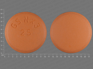 This medication is an Orange Round 10 mm, Tablet with imprint "GS;NX3;25". It contains 25 mg of Eltrombopag olamine 25 mg. It is manufactured by GlaxoSmithKline LLC. For details please contact your physician.