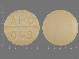 This medication is a Yellow Round 6 mm, Tablet with imprint "APO;049". It is manufactured by Apotex Corp.. For details please contact your physician.