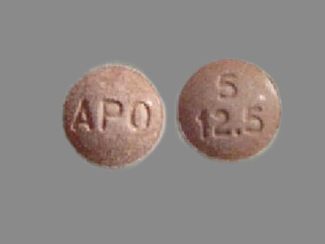 This medication is a Red Round 6 mm, Tablet with imprint "APO;5;12;5". It contains Enalapril maleate 5 mg;hydrochlorothiazide 12.5 mg; of Enalapril maleate[enalaprilat anhydrous];hydrochlorothiazide[hydrochlorothiazide];. It is manufactured by Apotex Corp.. For details please contact your physician.