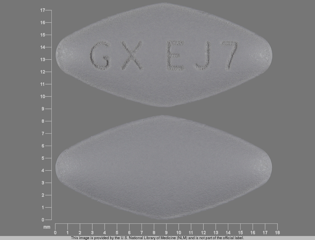 This medication is a Gray Diamond 17 mm, Film coated tablet with imprint "GX;EJ7". It contains Lamivudine 300 mg; of Lamivudine[lamivudine];. This belongs to the Human immunodeficiency virus nucleoside analog reverse transcriptase inhibitor pharmacologic class. It is manufactured by ViiV Healthcare Company. For details please contact your physician.