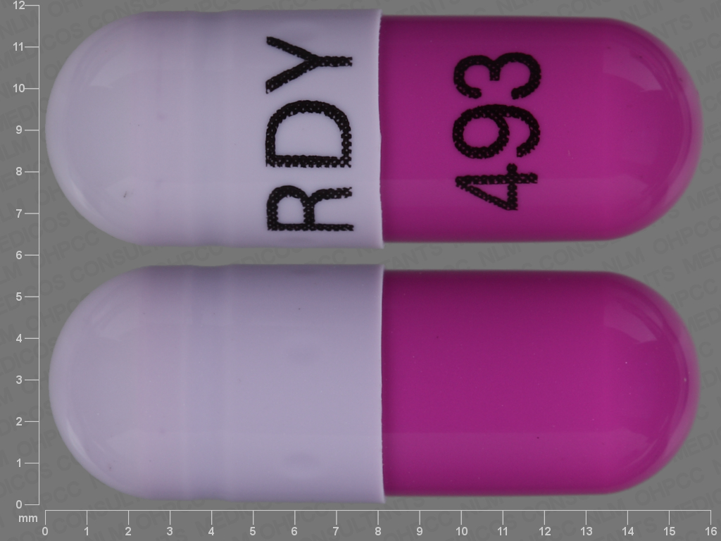 This medication is a Purple Capsule 18 mm, Delayed release capsule with imprint "RDY;493". It contains Esomeprazole magnesium 40 mg; of Esomeprazole magnesium[esomeprazole];. This belongs to the Proton pump inhibitor pharmacologic class. It is manufactured by Dr. Reddy's Laboratories Limited. For details please contact your physician.