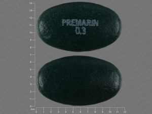 This medication is a Green Oval 11 mm, Tablet with imprint "PREMARIN;0;3". It is manufactured by Wyeth Pharmaceuticals Inc., a subsidiary of Pfizer Inc.. For details please contact your physician.