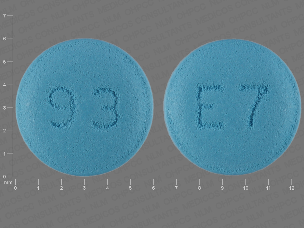 This medication is a Blue Round 6 mm, Film coated tablet with imprint "93;E7". It contains Eszopiclone 1 mg; of Eszopiclone[eszopiclone];. It is manufactured by Teva Pharmaceuticals USA, Inc.. For details please contact your physician.