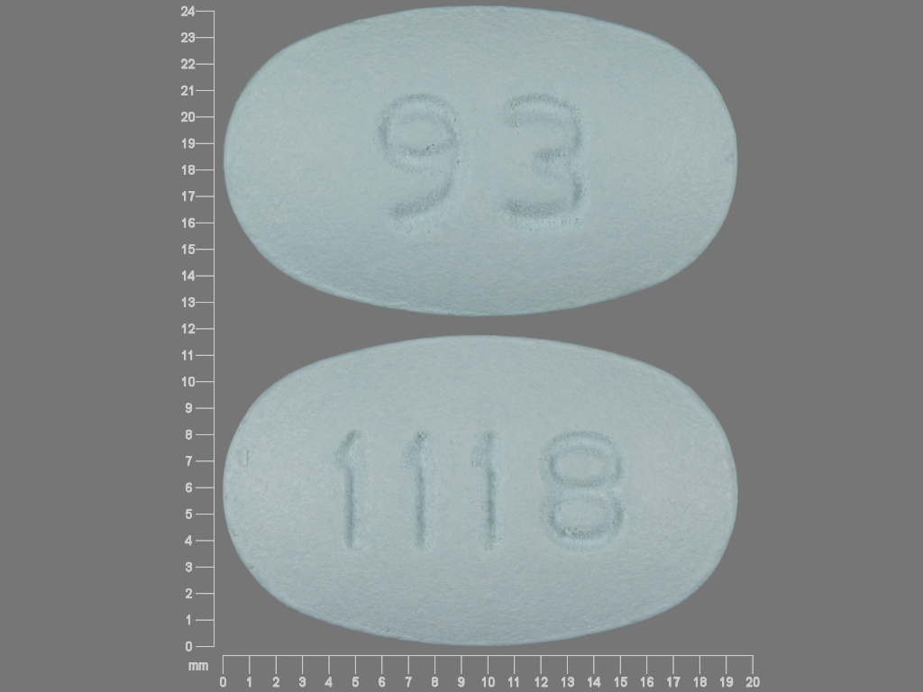 This medication is a Blue Oval 19 mm, Film coated extended release tablet with imprint "93;1118". It contains Etodolac 600 mg; of Etodolac[etodolac];. This belongs to the Nonsteroidal anti-inflammatory drug pharmacologic class. It is manufactured by Teva Pharmaceuticals USA, Inc.. For details please contact your physician.